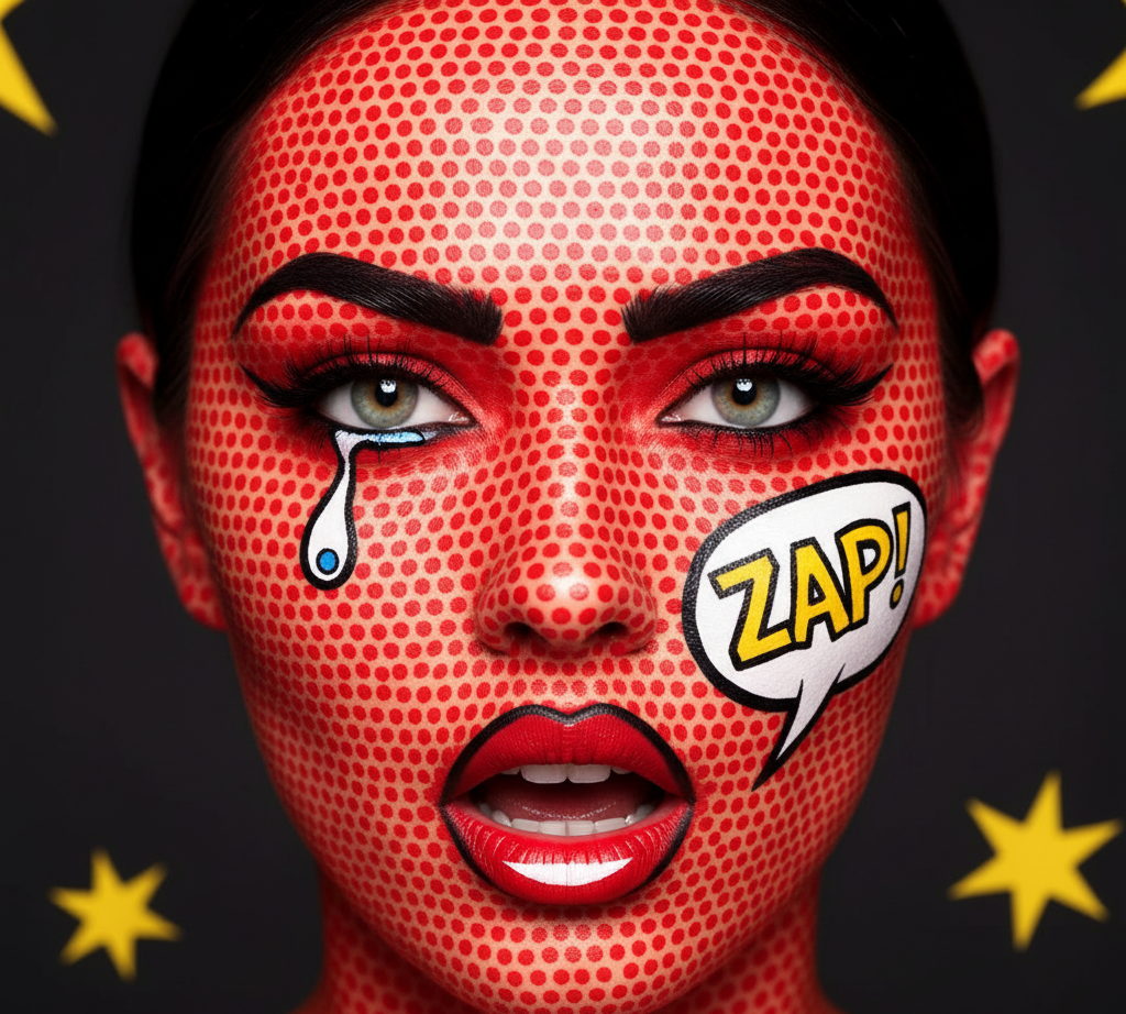 - Outline: Using black liquid eyeliner or face paint, create bold outlines around your key facial features: brows, nose, jawline, and lips. You can also draw outlines around any prominent wrinkles or folds to mimic comic book art.