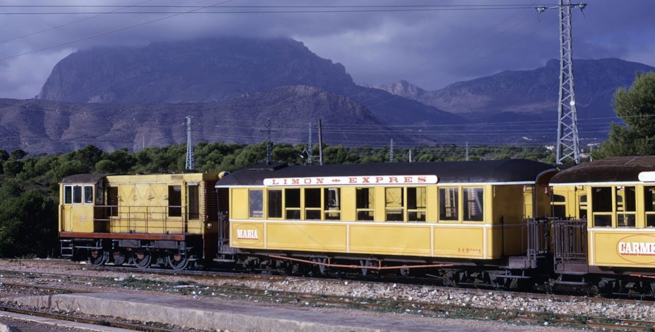 This famous train started running in 1971 and was the first tourist train in the country. It had twelve carriages with wooden balconies from the 1920s and 1930s, each named after a woman, two café cars, and three locomotives that train fans think of as relics. David Simpson, an Englishman residing in Benidorm, came up with the idea for the train. He found old railway equipment that was no longer in use and fixed it up to make the train, which was originally lemon yellow and called the Limón Express (Lemon Express).
